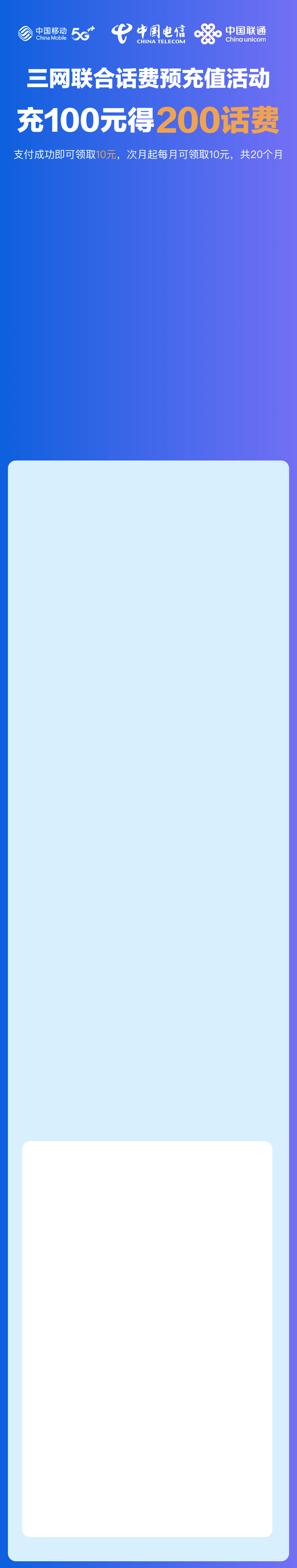 2.1 话费200元每个月可领取10元话费,需要在每月15日至11月14日为第一个兑换间期,11月15日至12月14日为第二个领取周期,以此类推。每个周期内可随时兑换话费,若某周期内未兑换,则视为主动放弃该周期领取资格,后续不做补发。领取一次话费后即接受相关权益服务,不可申请退款。2.2 参与活动的手机号请确认足您本人的手机号并且非携号转网,否则话费将无法领取。